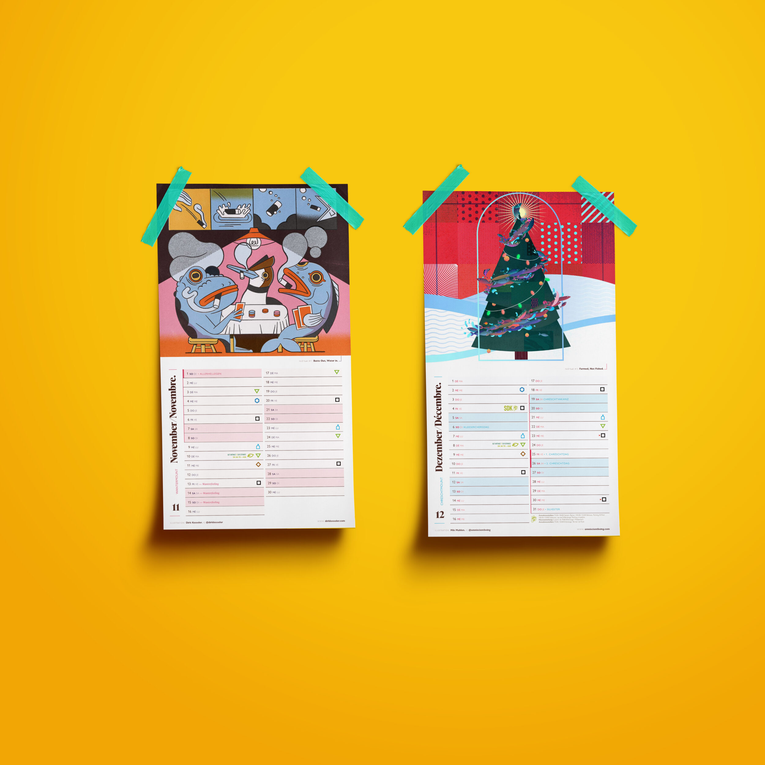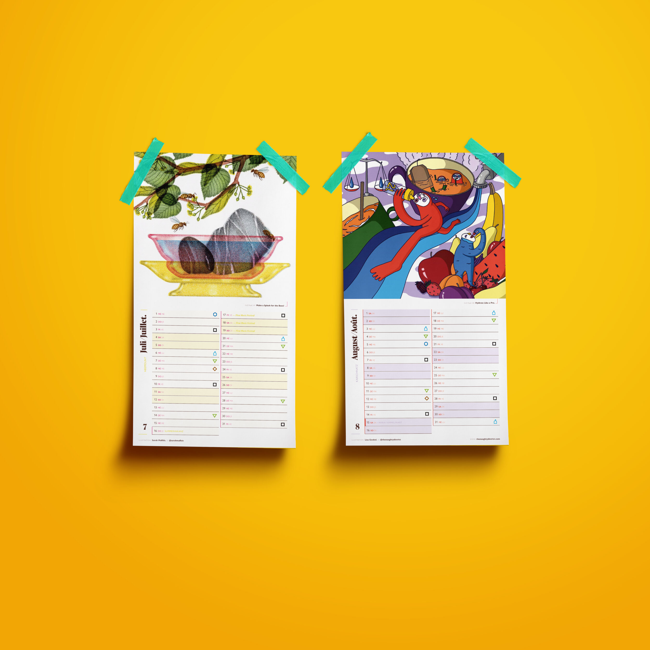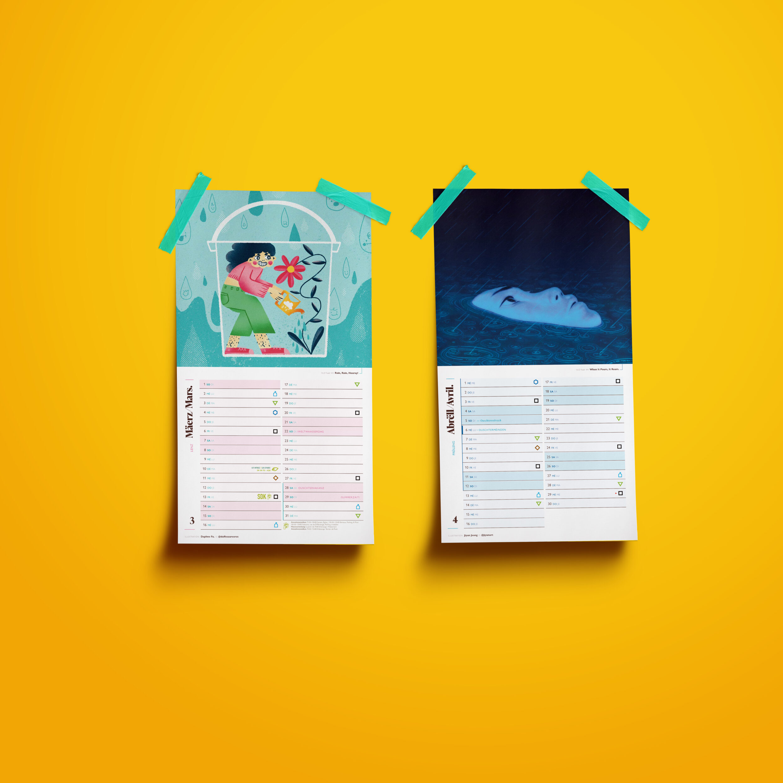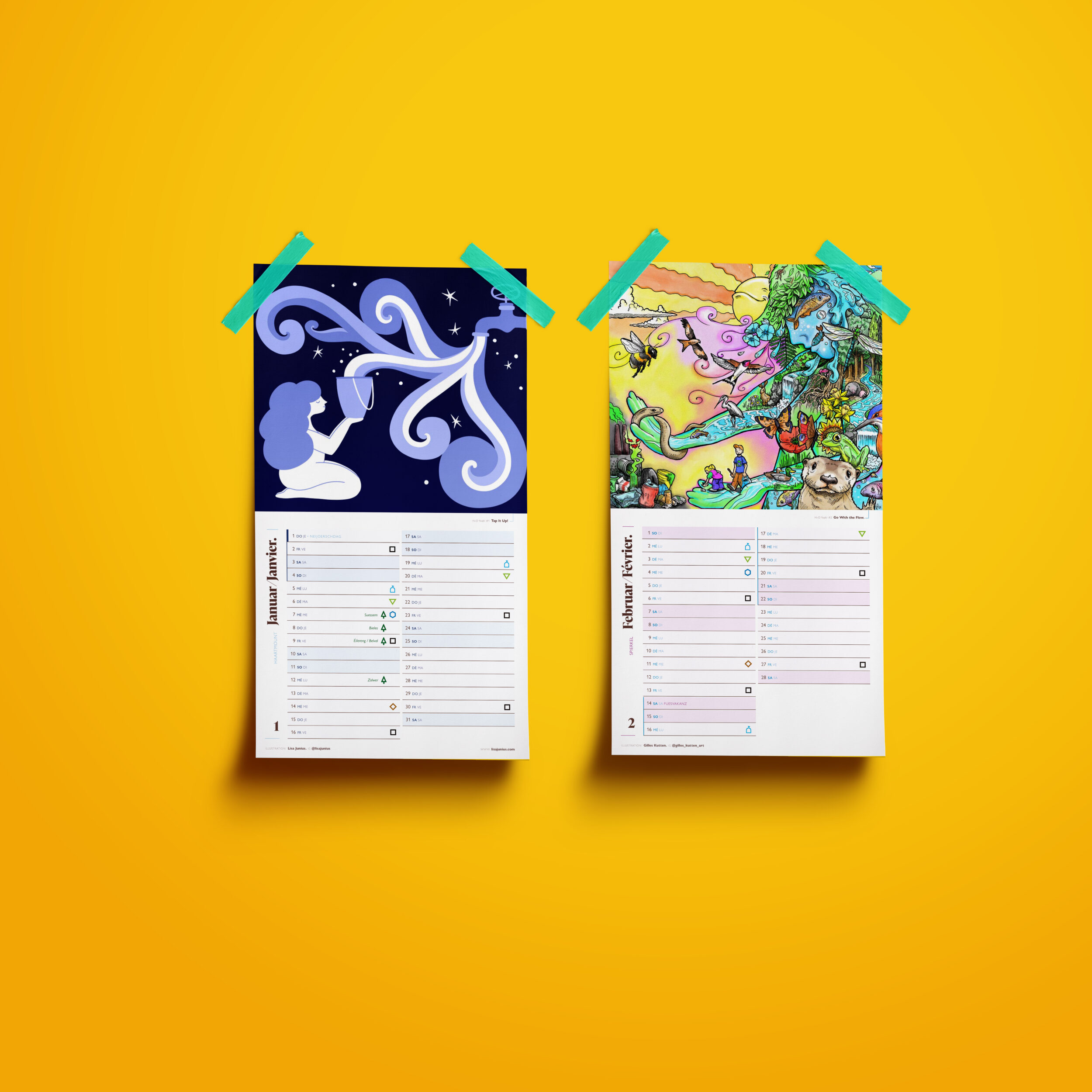 Chaque mois aborde un aspect différent de cette thématique : la préservation de l’eau potable, la biodiversité aquatique, la gestion durable des eaux pluviales, la réduction du gaspillage ou encore la protection des rivières et des nappes phréatiques. Les illustrateur·trice·s invité·e·s ont transformé ces sujets en œuvres visuelles inspirantes, invitant chacun·e à réfléchir à l’importance de l’eau dans notre quotidien – et à la manière dont nous pouvons la protéger, goutte après goutte.