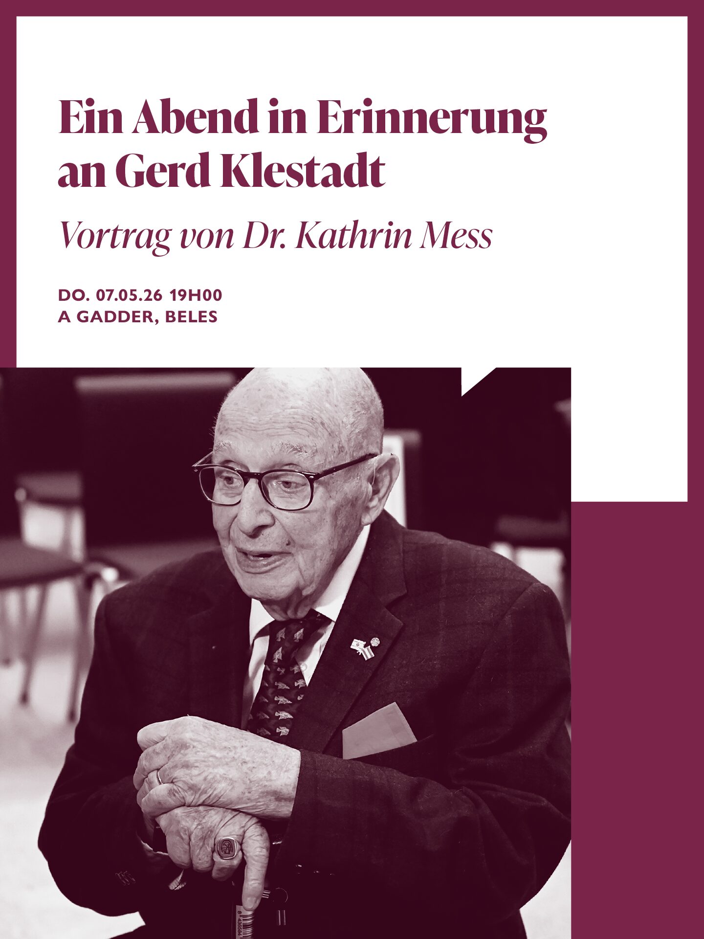 Enfant, Gerd Klestadt a survécu aux camps de concentration de Westerbork et de Bergen-Belsen, un traumatisme qui l’a marqué à vie. Dans la commune de Sanem, devenue sa patrie, et bien au-delà, il s’est engagé sans relâche pour transmettre la mémoire de la Shoah et promouvoir l’humanité ainsi que la tolérance.
