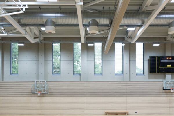 L’infrastructure moderne et polyvalente du complexe permettra d’accueillir les élèves et toutes sortes de sportifs dans les meilleures conditions. Avec un coût de construction qui s’élève à 12 mio €, le hall a été conçu en priorisant les aspects durable et écologique. Des panneaux photovoltaïques installés sur le toit génèrent l’eau chaude dans le bâtiment.