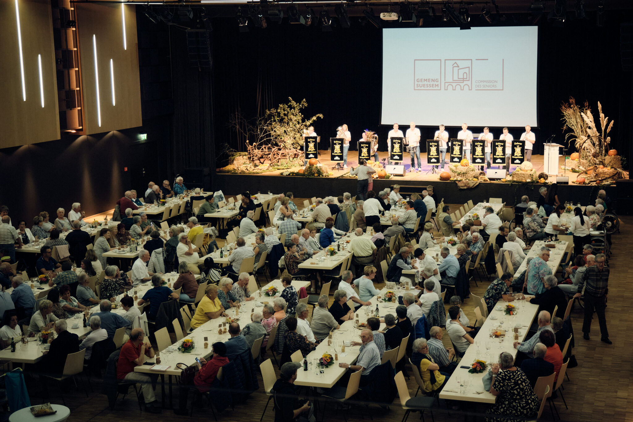 Le Collège des bourgmestre et échevin·e·s et la Commission des Seniors de la Commune de Sanem avaient invité à la traditionnelle fête des seniors du 26 au 28 septembre 2023. Dans le cadre festif de l’Artikuss au Scheierhaff à Soleuvre, paré de décorations automnales, les invité·e·s ont profité de l’occasion pour passer un moment convivial ensemble tout en partageant une délicieuse agape. L’idée est de cultiver des amitiés et souder les liens dans la communauté.