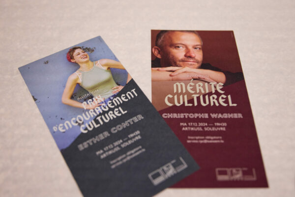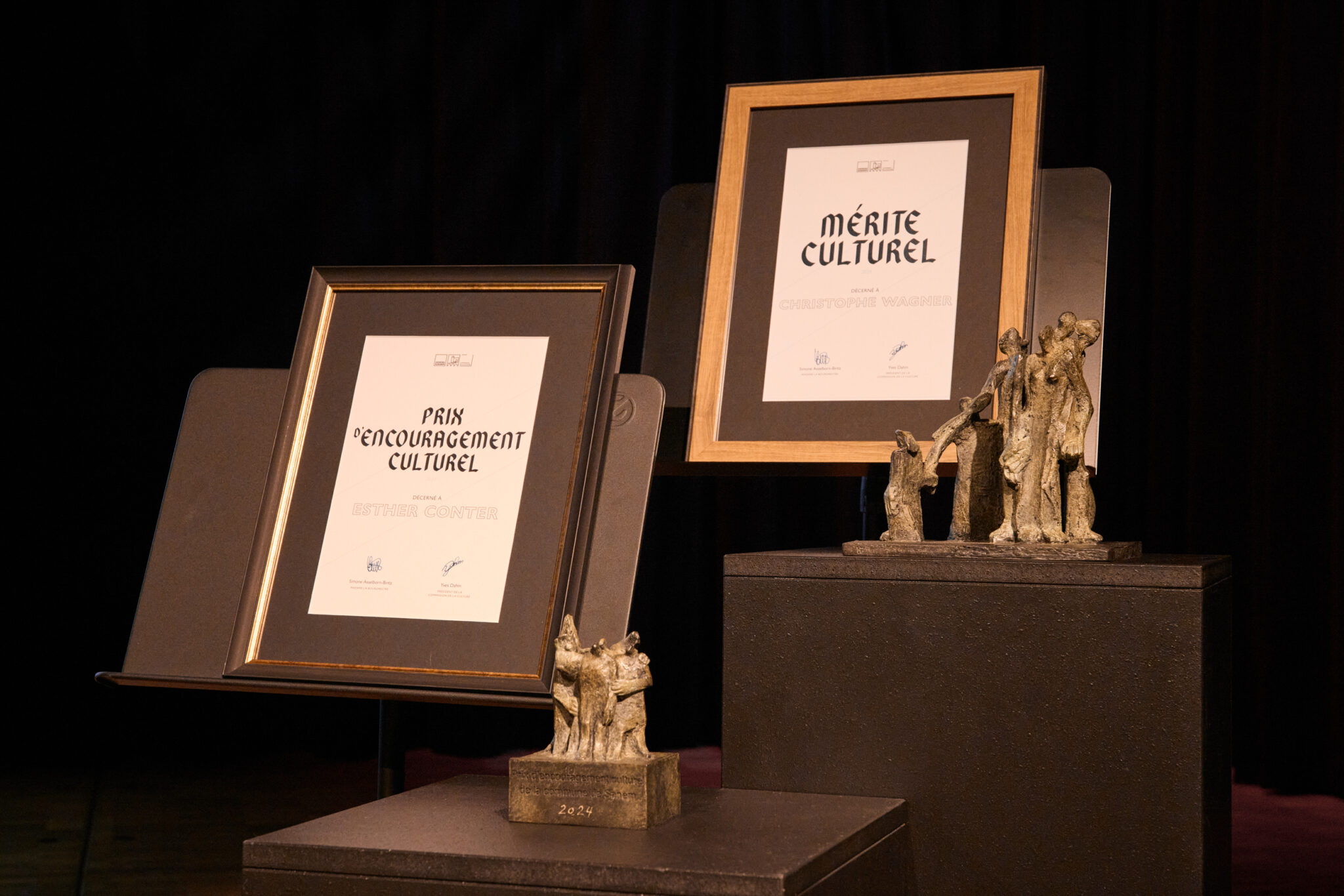 Lors de cette soirée, deux artistes ont été traditionnellement mis·es à l’honneur. Le Mérite culturel a été décerné au réalisateur et scénariste Christophe Wagner, tandis que le Prix d’encouragement culturel a été attribué à la comédienne et chanteuse-compositrice Esther Conter. La laudatio pour Christophe Wagner a été prononcée par Alex Reuter, membre de la Commission de la culture et lui-même lauréat de ce prix en 2012. Quant à Esther Conter, c’est son amie proche, Salima Ben Guigui, qui lui a rendu un hommage personnel. Les prix ont été remis par la bourgmestre, Simone Asselborn-Bintz, et le président de la Commission de la culture, Yves Dahm.