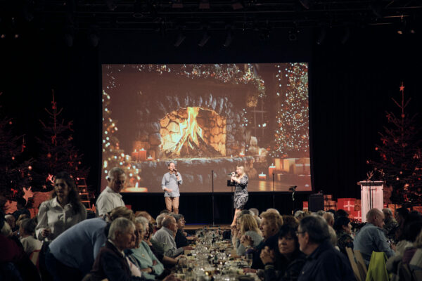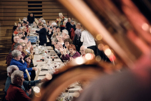 Les 9 et 10 décembre 2025, la Commune de Sanem a accueilli les seniors pour leur rencontre annuelle, organisée conjointement par le Collège des bourgmestre et échevin·e·s et la Commission des seniors. L’événement s’est déroulé à l’Artikuss, au Scheierhaff à Soleuvre, où une salle soigneusement préparée pour la saison a offert un cadre chaleureux aux festivités. Comme chaque année, ces deux journées ont permis aux participant·e·s de se retrouver, de partager un repas convivial et de passer un moment agréable entre connaissances, ami·e·s et ancien·ne·s collègues. L’ouverture de la fête a été assurée par Jean-Pierre Schlesser, Président de la Commission des seniors. L’ambiance musicale était assurée par l’orchestre Sandy Botsch & Romain Kerschen, complétée par la prestation traditionnelle des Zolwer Knappbléiser.